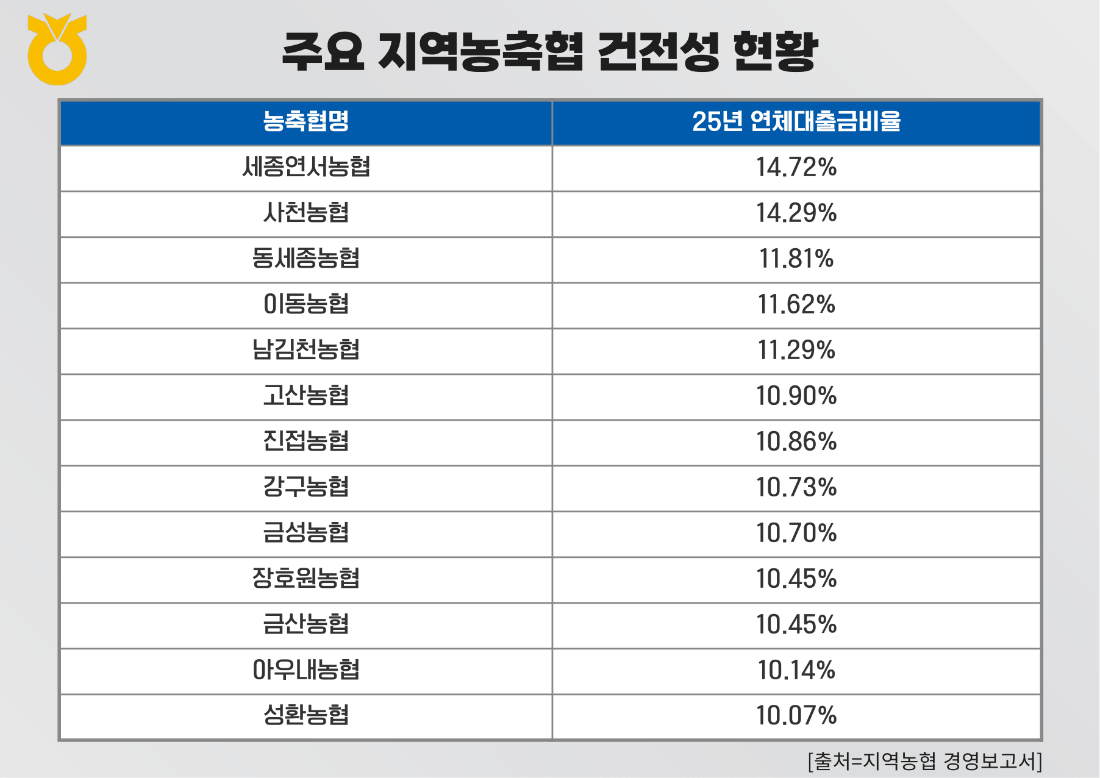 지역농협 10곳 중 6곳 ‘실적 역성장’ 쇼크…연체율 10% 이상 조합도 무려 13곳