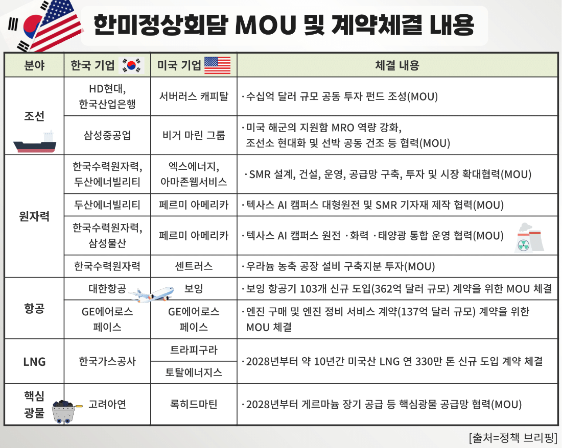 한미정상회담이 전략산업 전반의 성장 기회로 작용할 거라는 기대가 높아지고 있지만 이러한 성과를 현실화하기 위해선 기업의 노력뿐 아니라 우리 정부의 제도적 뒷받침이 필수라는 주장이 나온다. 업계의 한 관계자는 “큰 틀의 합의가 실제 투자와 계약으로 이어질지는 기업들의 실행 의지와 정부의 후속 지원에 달려 있다”고 강조했다.