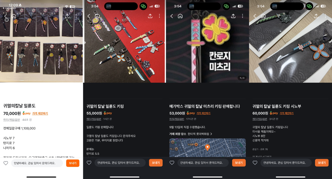 현재 당근마켓, 번개장터 등 중고 거래 플랫폼에는 키링이 4만원 이상에 판매되고 있다. 10개를 한꺼번에 구매한 경우 최대 110만원까지 거래가 이뤄지고 있는데 이는 정가 대비 10배가량 웃돈이 붙은 수준이다. 그럼에도 키링을 원하는 팬들은 울며 겨자 먹기로 비싼 값을 지불하고 있다. 메가박스 관계자는 “재입고 시점과 물량은 확정되지 않았으나 대략 2차 판매 물량과 비슷할 것”이라며 “현재는 품절 상태로, 3차 판매를 기다려야 한다”고 설명했다.