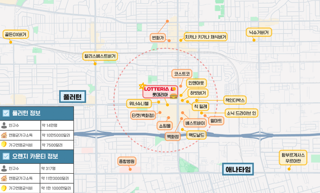 미국 롯데리아 1호점은 오픈 당시부터 많은 우려를 받아왔다. 인근에 인앤아웃(In-N-Out), 칙필레(Chick-fil-A), 하빗 버거(The Habit Burger) 등 강력한 현지 버거 프랜차이즈들이 있어 치열한 경쟁이 예상됐기 때문이다. 현재 인앤아웃의 경우 구글 평점 4.7점, 칙필레는 4.5점으로 집계돼 롯데리아보다 높은 것으로 나타났다.