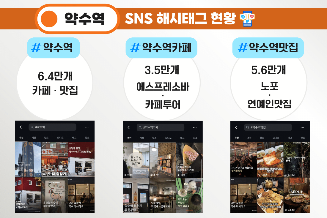 약수역 상권은 오래된 순댓국집과 세련된 에스프레소바, BTS 팬들이 몰리는 식당과 조용한 막국수집이 한 블록 안에서 공존하는 보기 드문 형태를 띠고 있다. SNS와 유튜브를 중심으로 한 콘텐츠 소비가 오프라인 유입으로 이어지고 외국인 관광객과 젊은 직장인, 중장년층까지 다양한 소비층이 형성됐다.