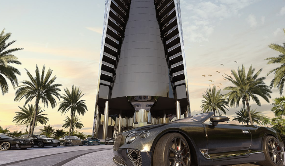 최근 서니아일스 비치에는 새로운 랜드마크로 평가받는 초고층 럭셔리 아파트 공사가 한창 진행 중이다. 영국 슈퍼카 브랜드 벤틀리와 포르쉐 디자인 타워를 건설한 미국 현지 건설업체인 데저 디벨롭먼트(Dezer development)가 협력해 건설 중인 ‘벤틀리 레지던스 마이애미’(Bentley Residences Miami, 이하 벤틀리 레지던스)가 그것이다. 2026년 완공을 목표로 지어지고 있는 건물은 61층, 216세대 규모다. 포르쉐 디자인 타워와 동일한 자동차 리프트 시스템이 적용될 예정이다.