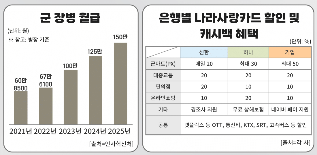 특히 카드사들은 20대 장병들의 관심을 끌기 위해 인기 아이돌을 광고 모델로 기용하며 홍보전을 강화하고 있다. 신한은행은 걸그룹 ‘ITZY’ 유나, 하나은행은 ‘아이브’ 안유진, 기업은행은 ‘올데이프로젝트’를 모델로 내세워 젊은 고객층 공략에 나섰다.