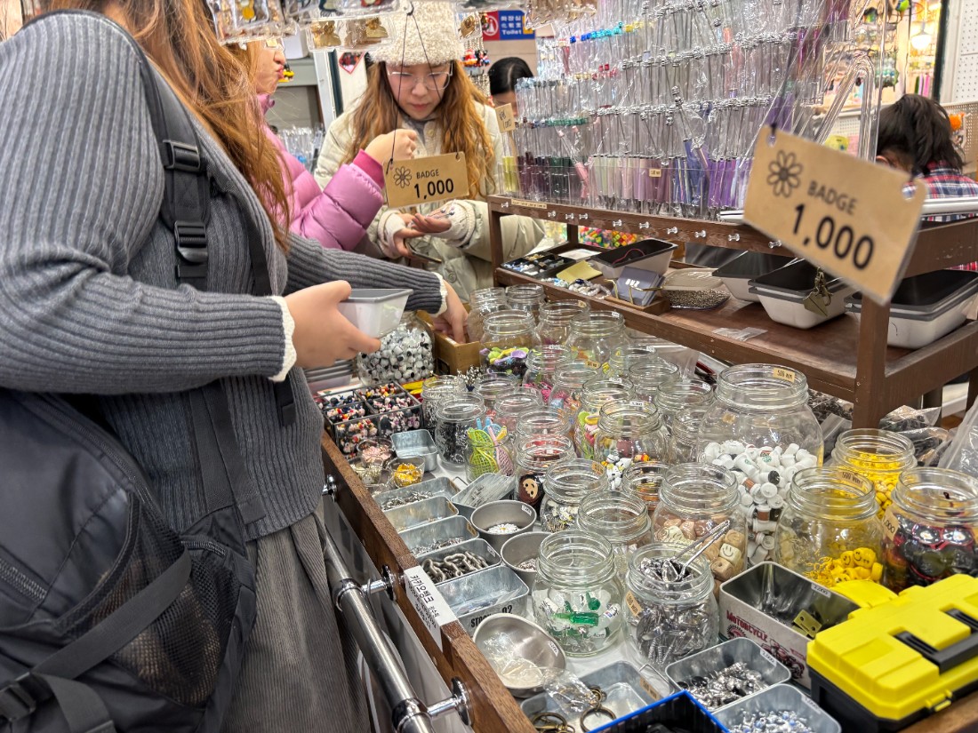 르데스크가 평일 오후 동대문종합시장 5층 부자재 상가를 방문한 결과 평일임에도 불구하고 매장은 이미 사람들로 붐비고 있었다. 색색의 볼펜 몸통이 진열된 매대 앞에는 방학을 맞아 방문한 초등학생부터 대학생, 점심시간을 이용해 들른 인근 직장인, 40대 여성들까지 다양한 연령대의 방문객들이 모여 있었다.