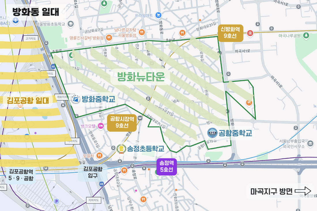 서울 서쪽 외곽에 위치해 있다는 인식과 신축 아파트 단지 부족으로 주거지로서 상대적으로 주목받지 못했던 강서구 방화동이 최근 ‘제2의 마곡’으로 불리며 신흥 주거지로 부상하고 있다. 마곡지구와 인접한 입지에 더해 대규모 정비사업이 본격화되면서 주거 환경 개선 기대감이 커진 영향이다. 방화동은 지난 2003년 11월 서울시 2차 뉴타운으로 지정되며 도시 정비의 출발선에 섰다.