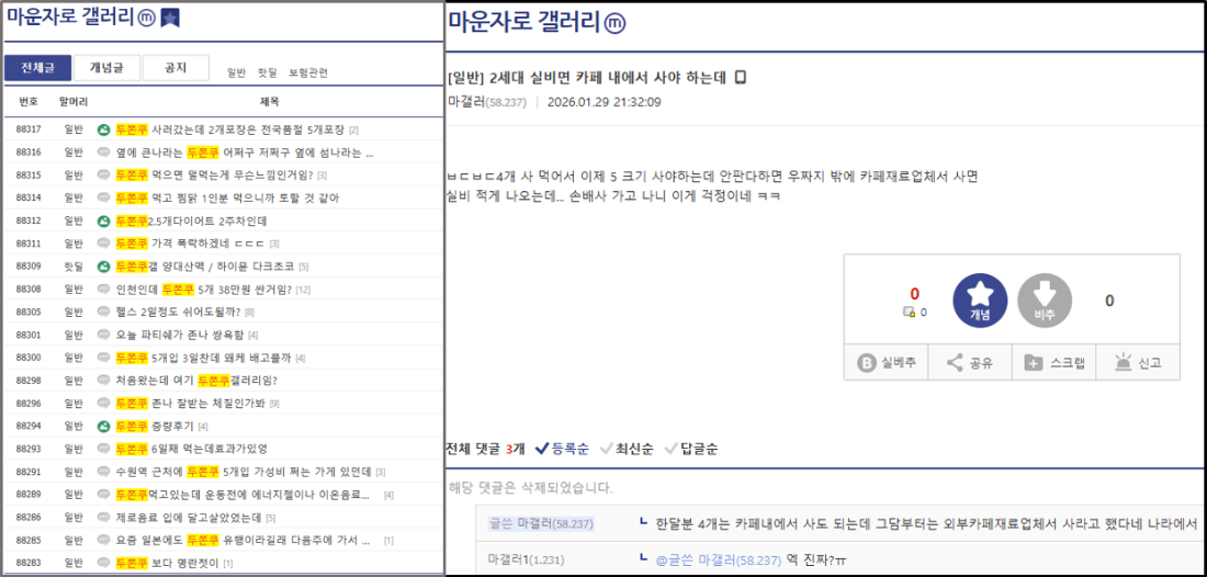이처럼 게시판 내에서 사실상 핵심 정보 공유가 전면 차단되자 이용자들은 다른 방식으로 정보를 주고받기 시작했다. 약 이름과 병원, 의료진을 직접 언급하는 대신 은어를 사용하는 방식이다. 위고비와 마운자로는 ‘두쫀쿠’로 병원은 ‘베이커리’, 의사는 ‘제빵사’로 불린다. 이는 규제를 피해 최소한의 정보를 주고받기 위해 형성된 일종의 암호 체계다.