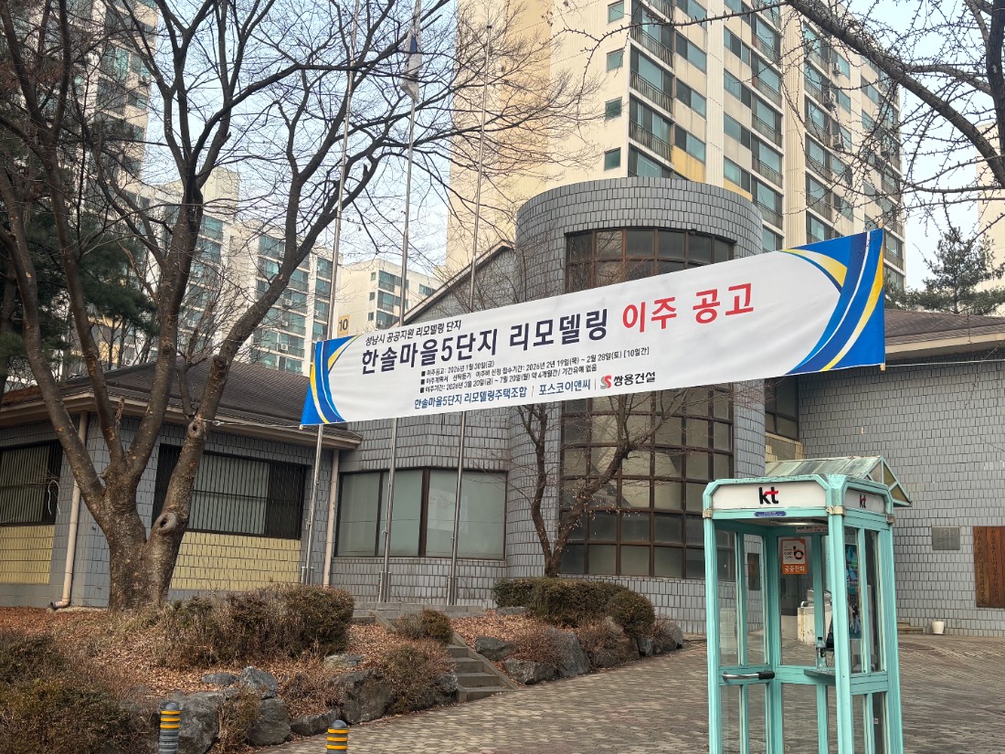 그동안 소송과 시공사 선정 문제 등으로 사업이 지연됐던 한솔마을 5단지가 지난달 30일 조합원과 세입자를 대상으로 이주 개시를 공식 공고했다. 이에 따라 이달 19일부터 28일까지 이주계획서 접수와 신탁등기, 이주비 대출 신청이 진행될 예정이다. 실제 이주 기간은 다음달 20일부터 오는 7월 20일까지 약 4개월로 예정돼 있다.