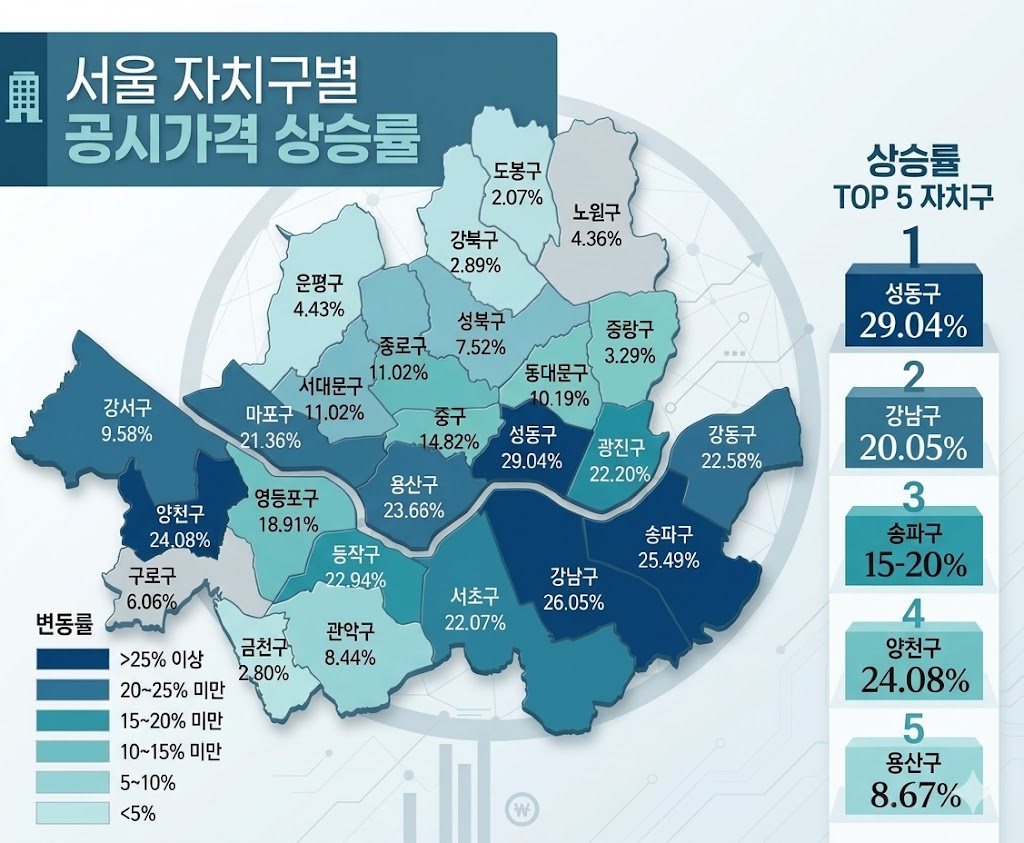 강남3구, 한강벨트 등 서울 인기지역 공시지가 급등…세 부담 확대➞세입자 피해 주장 고개