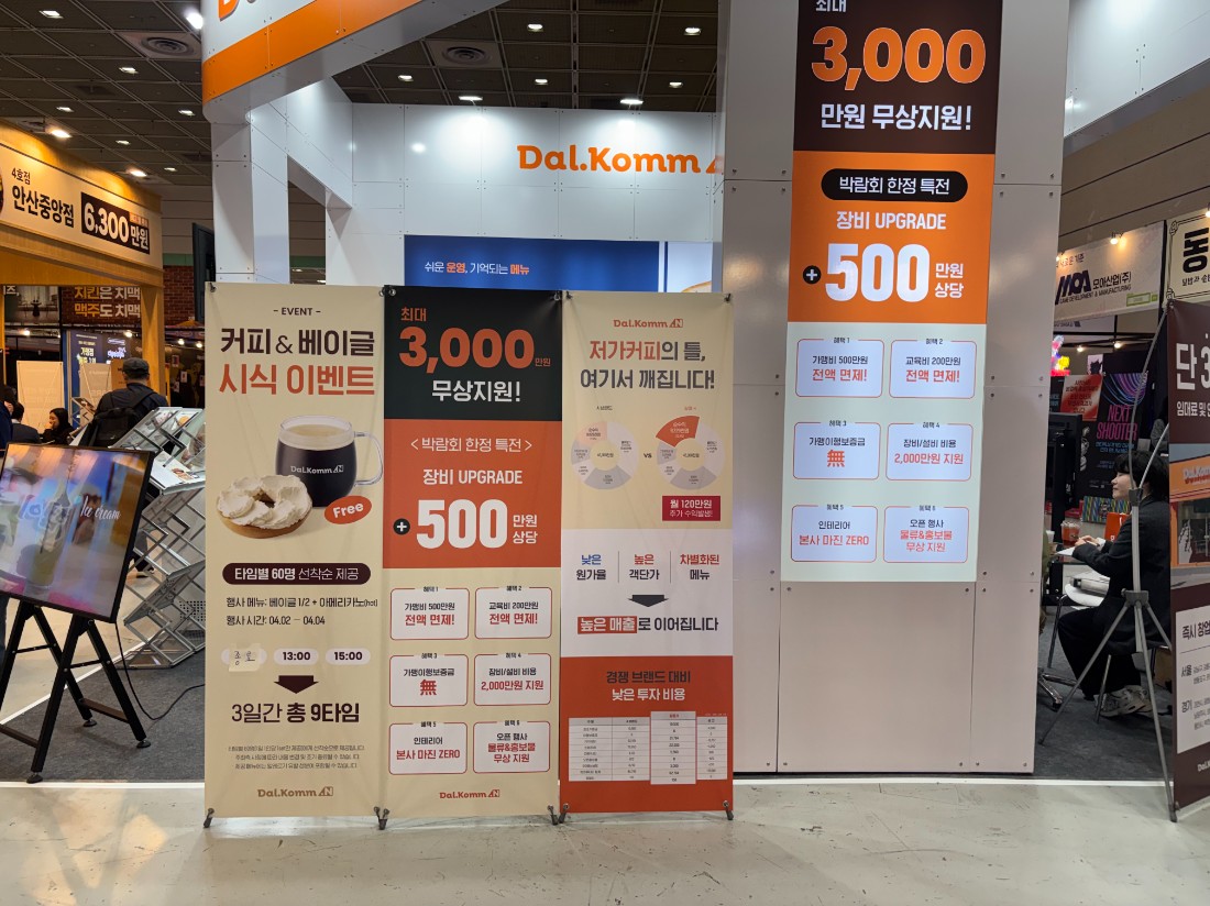 해당 브랜드들 역시 현장 상담객을 겨냥한 다양한 지원책을 내세웠다. 프랜차이즈 커피 브랜드 ‘달콤커피N’는 박람회 현장에서 상담을 받은 뒤 매장을 오픈할 경우 가맹비와 교육비, 가맹이행 보증금은 물론 장비 및 설비 비용까지 지원하겠다는 방침이다. 또한 인테리어 공사에서 본사 마진이 없다는 점을 강조하고 오픈 시 물류와 홍보물을 무상 제공한다고 안내했다.