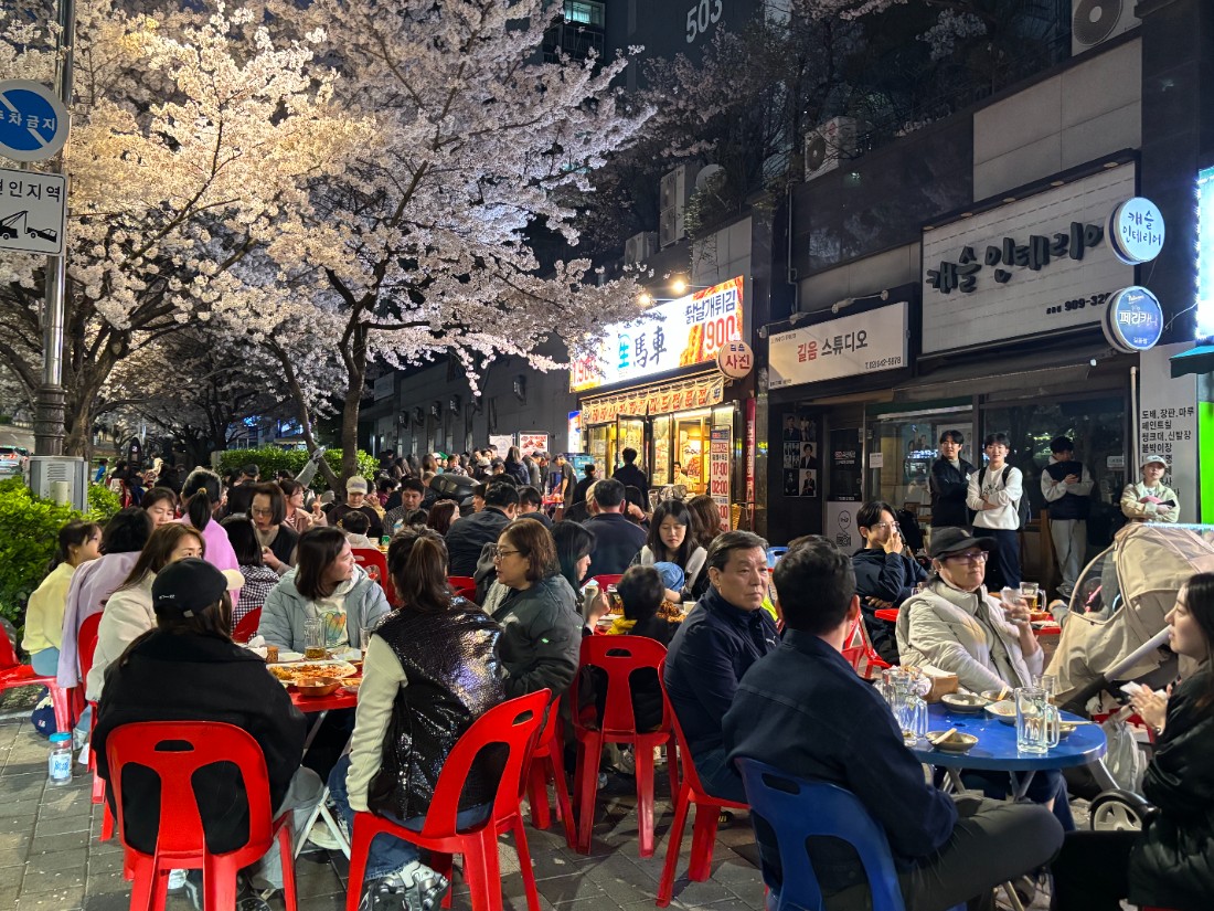 최근 SNS상에서 가장 주목받는 야장 중 하나는 ‘성북천 야장골목’이다. 한성대입구역 인근에서부터 성북천을 따라 이어지는 이 구간은 봄철 벚꽃과 함께 야외 술자리를 즐길 수 있다는 점에서 입소문을 타고 빠르게 확산됐다. 실제로 저녁 시간대가 되면 하천을 따라 늘어선 테이블마다 사람들로 가득 차고 골목 입구에는 자리를 기다리는 대기 인원이 길게 줄을 선다.