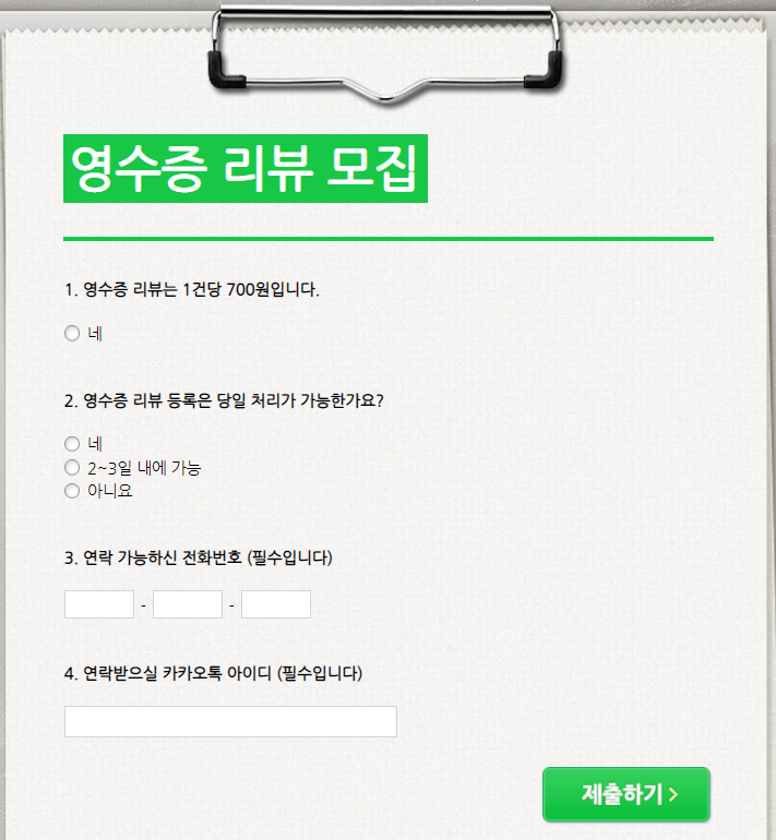 리뷰 단톡방에 들어가 있으면 리뷰 알바가 필요한 업체 측에서 실시간으로 공고를 올린다. 공고 분야는 맛집, 육아용품, 음식, 전자기기 등 다양하다. 올라온 공고 알바를 수행할 수 있으면 링크를 눌러 참여한다. 링크를 누르면 카톡방 혹은 네이버 폼 등으로 이동하는데 양식에 맞춰서 연락처, 이름, 주소 등 기본적인 신상정보를 입력 후 알바를 진행하면 된다.